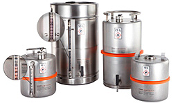 Safety containers made of high quality stainless steel (wall thickness 0.8 mm) with PTFE seals – for high strength
