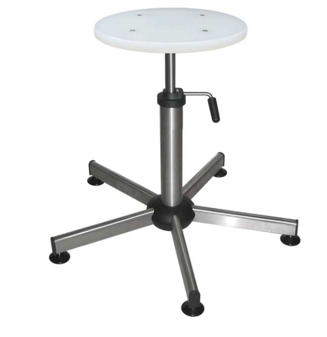 Construction type as shown in the attached picture. N ° 4 support feet with non-slip rubber. Circular seat in stainless steel, adjustable height 500-640 mm with screw.